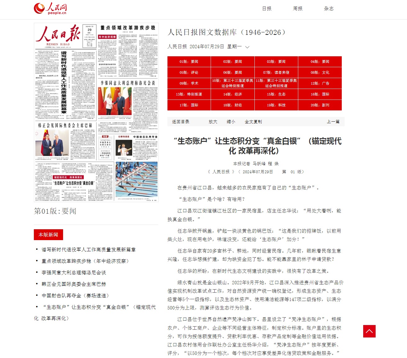 【人民日报】锚定现代化改革再深化:“生态账户”让生态积分变“真金白银”