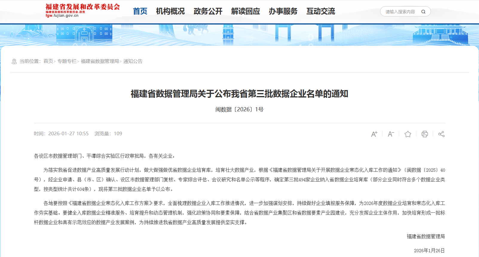福建省数据管理局经企业申请、县(市、区)确认、设区市数据管理部门复核、专家综合评估、会议研究和名单公示等程序,确定福建省第三批入库数据企业名单,我司以综合实力在众多申报主体中脱颖而出,以下是通知公告原文。