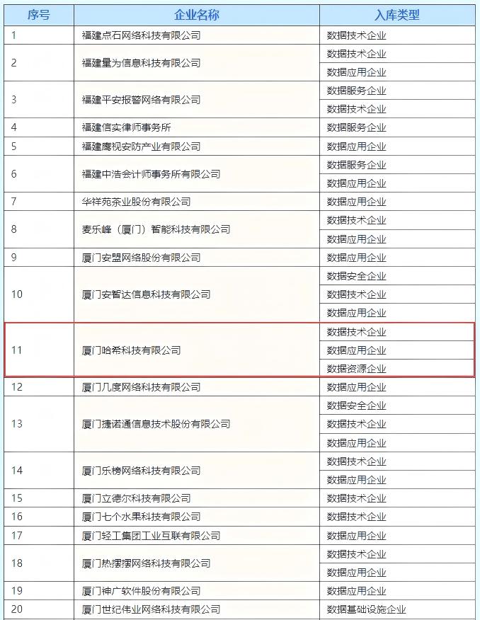 喜报 | 哈希科技入选福建省第三批入库数据企业名单